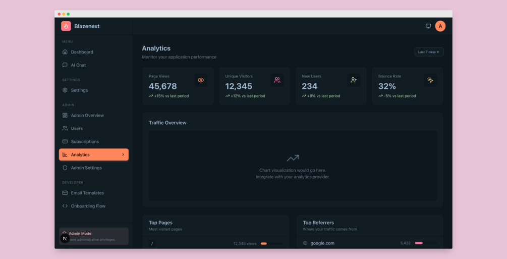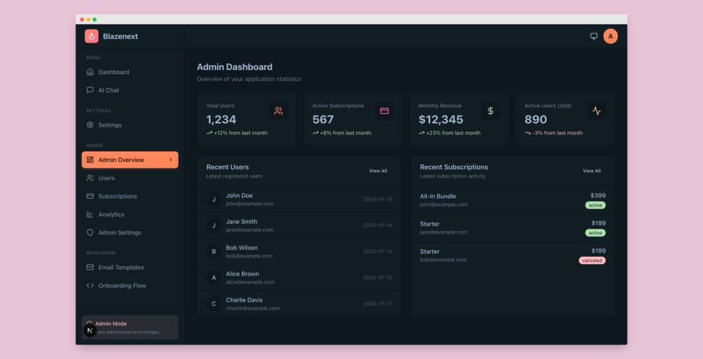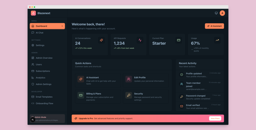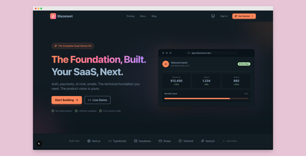 BlazeNext v2 is a production-ready Next.js SaaS boilerplate with everything you need to launch fast.